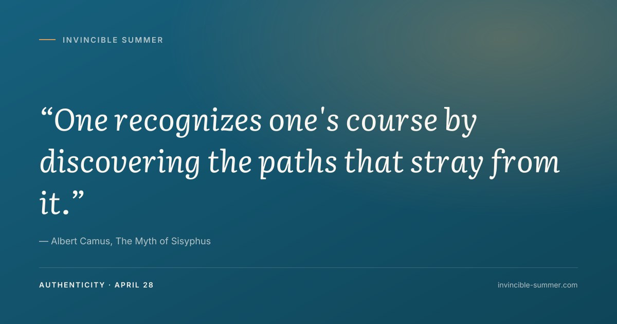Authenticity"One recognizes one's course by discovering the paths that stray from it." — Albert Camus, The Myth of Sisyphus